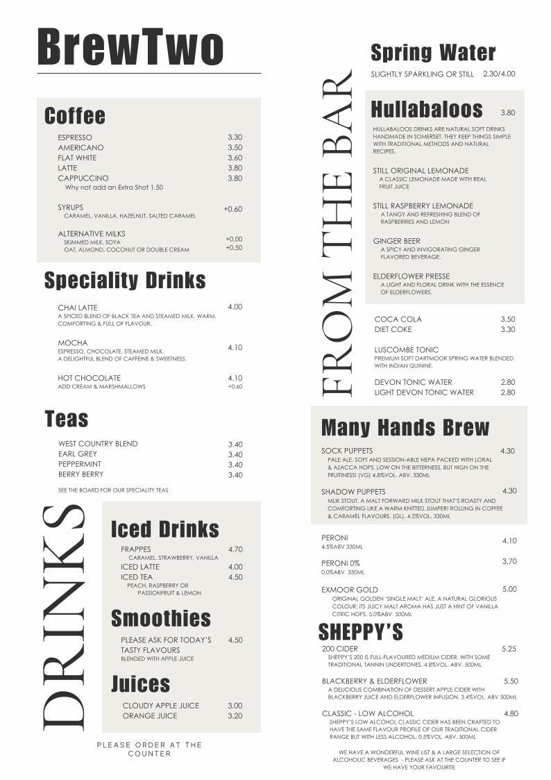 Welcome to BrewTwo, the charming café nestled on Mantle St, Wellington. With a menu designed to delight, BrewTwo stands out as a local favorite for both casual meals and special occasions. The warm ciabatta selection features mouthwatering options like Tim Potter Roasted Ham & Tomato and Pulled Pork & Apple, each served with homemade slaw and bistro salad, making for a fulfilling lunch experience.
