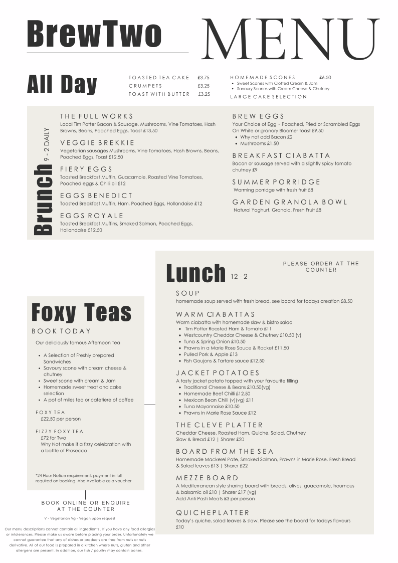 Our deliciously famous Afternoon Tea A selection of freshly prepared finger sandwiches.Savoury scone with cream cheese and homemade chutney. Sweet scone with clotted cream and jam. Our homemade sweet treat and cake selection. A pot of Miles Leaf Tea or a cafetiere of Fairtrade Coffee Enjoy an afternoon treat with us!
